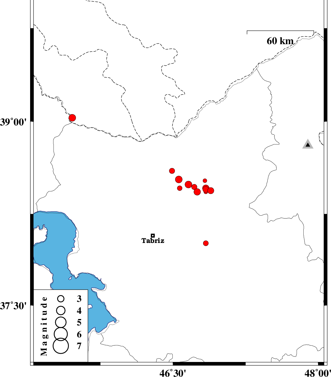 2013/01/05 | 00:39:37.3 | 04:09:37.3 | 38.52 | 46.83 | 14 | ML:1.9 | Azarbaijan Sharghi Province, 23 km West of Ahar | ||