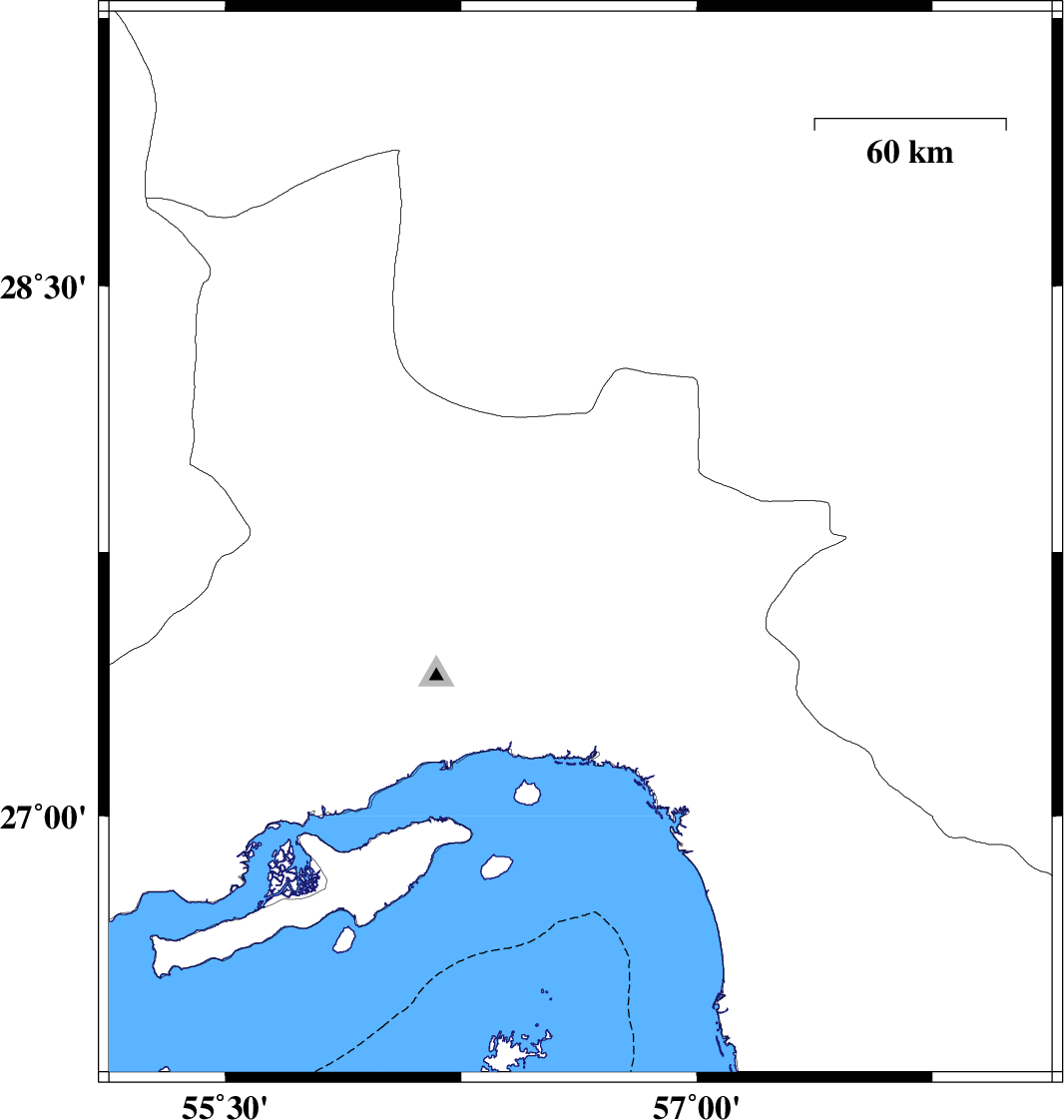 | 2013/01/24 | 09:28:32.3 | 12:58:32.3 | 27.78 | 56.65 | 15 | ML:4.2 | Hormozgan Province, 70 km North-West of Dehbarez | ||