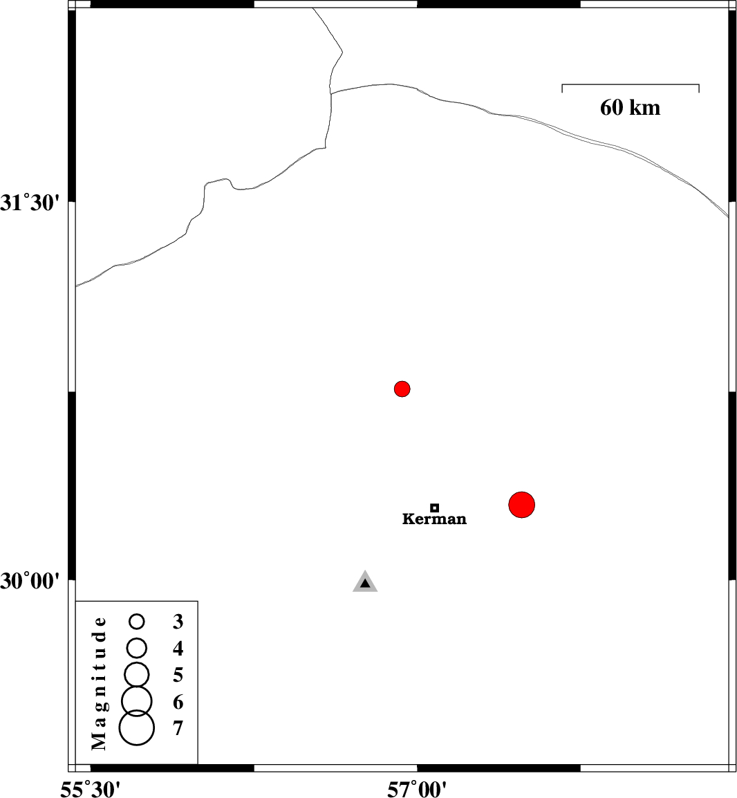 | 2013/01/21 | 19:48:58.5 | 23:18:58.5 | 30.3 | 57.48 | 28 | ML:5.3 | Kerman Province, 39 km East of Kerman |