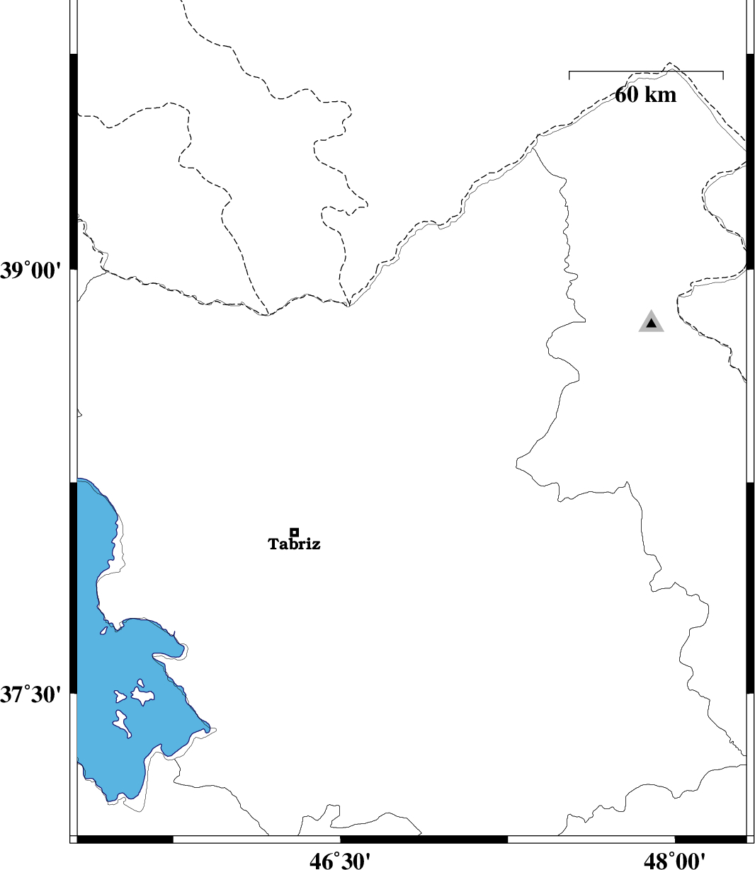 2013/01/25 03:06:22.4 06:36:22.4 38.5546.5715 ML:3.2 Azarbaijan Sharghi Province, 45 km West of Ahar