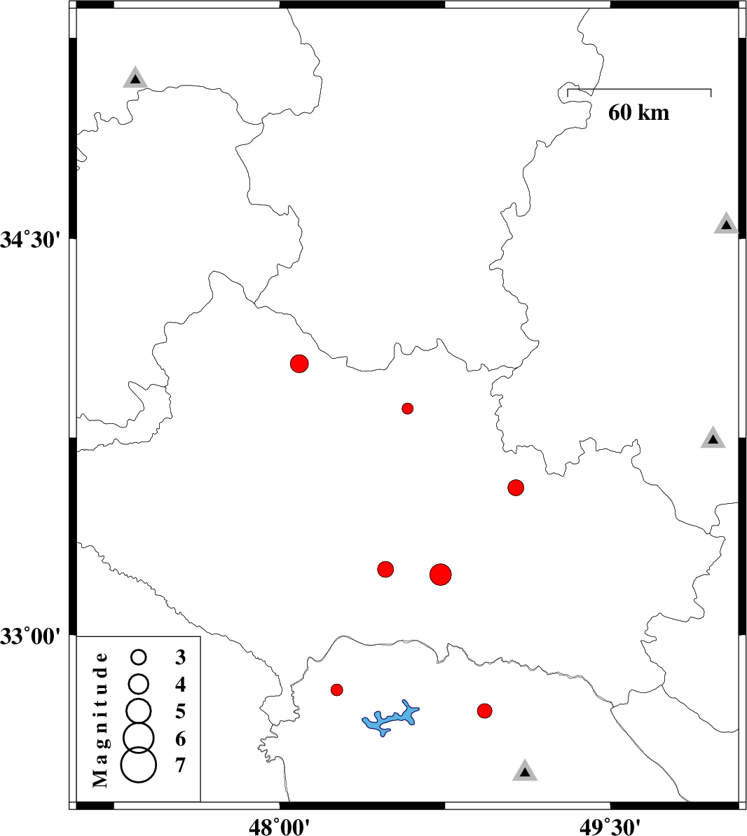 | 2013/02/07 | 16:26:30.0 | 19:56:30.0 | 33.86 | 48.58 | 29 | ML:2.3 | Lorestan Province, 17 km West of Borujerd | ||