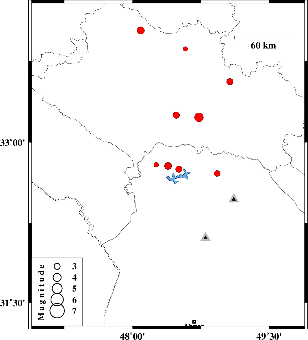| 2013/01/13 | 09:07:45.6 | 12:37:45.6 | 32.71 | 48.93 | 14 | ML:3 | Khoozestan Province, 39 km North-West of Lali |