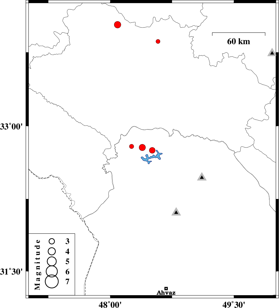 | 2013/02/07 | 16:26:30.0 | 19:56:30.0 | 33.86 | 48.58 | 29 | ML:2.3 | Lorestan Province, 17 km West of Borujerd | ||