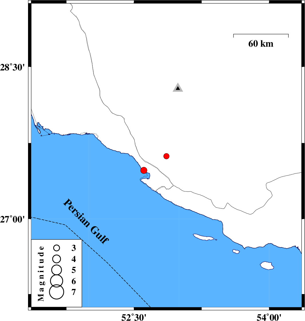 | 2013/01/22 | 12:25:52.7 | 15:55:52.7 | 27.48 | 52.61 | 14 | ML:3.3 | Bushehr Province, 29 km West of Mehr |