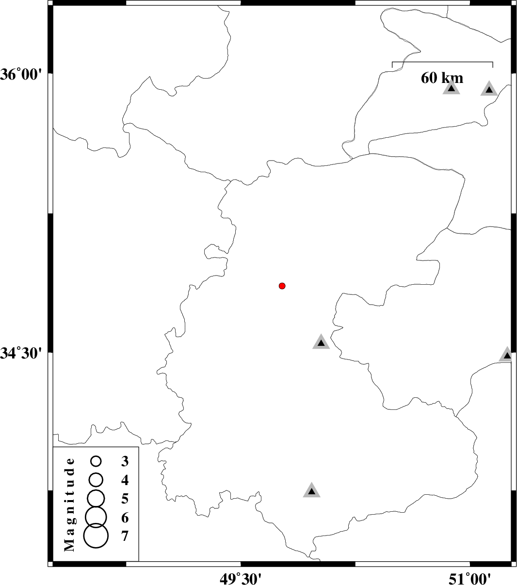 | 2013/02/08 | 22:50:20.2 | 02:20:20.2 | 34.86 | 49.77 | 18 | ML:1.8 | Markazi Province, 29 km North-West of Tafresh | ||