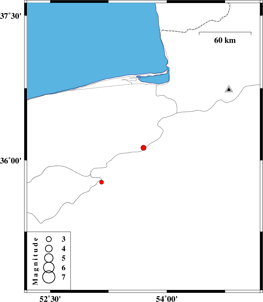 | 2013/02/12 | 11:15:03.9 | 14:45:03.9 | 36.13 | 53.7 | 14 | ML:3.1 | Mazandaran Province, 57 km East of Pol-E-Sefid | ||