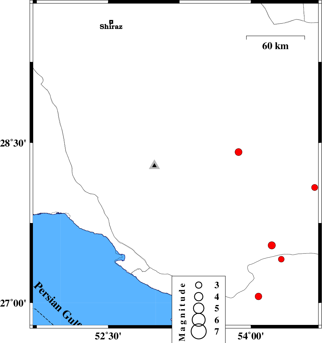 | 2013/02/15 | 12:10:56.2 | 15:40:56.2 | 29.29 | 53.8 | 18 | ML:3.2 | Fars Province, 30 km North-West of Estahban | ||