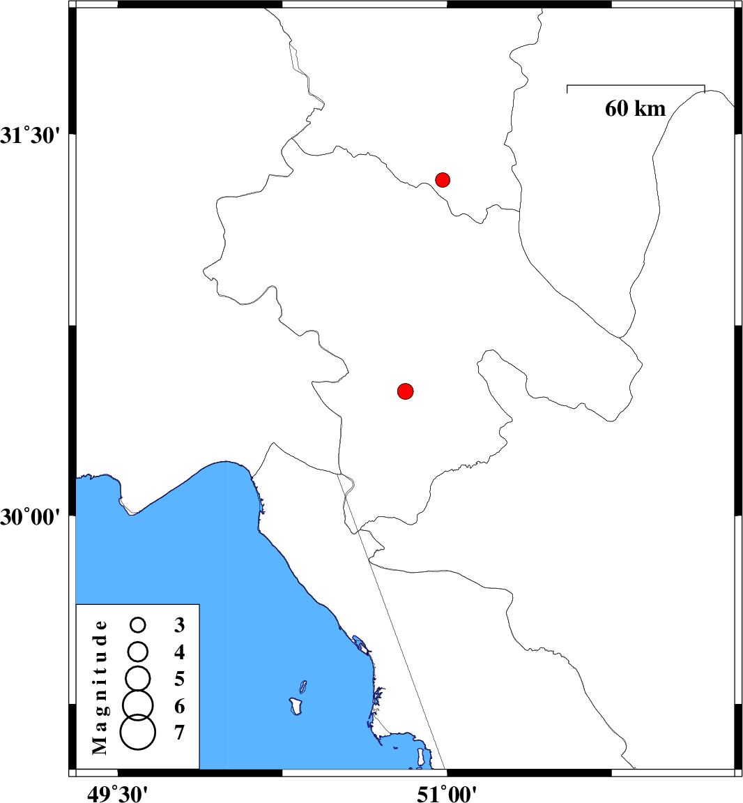 | 2013/02/13 | 14:50:56.5 | 18:20:56.5 | 31.32 | 50.98 | 18 | ML:2.9 | Chaharmahal Bakhtiari Province, 26 km South-East of Lordegan |