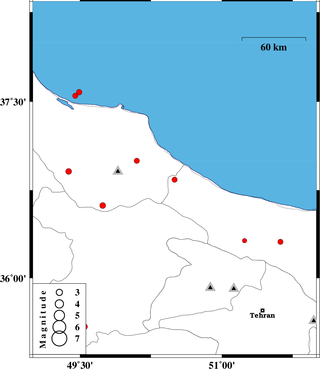 | 2013/02/12 | 15:06:00.1 | 18:36:00.1 | 37 | 50.1 | 18 | ML:2.6 | Gilan Province, 11 km Amlash | ||