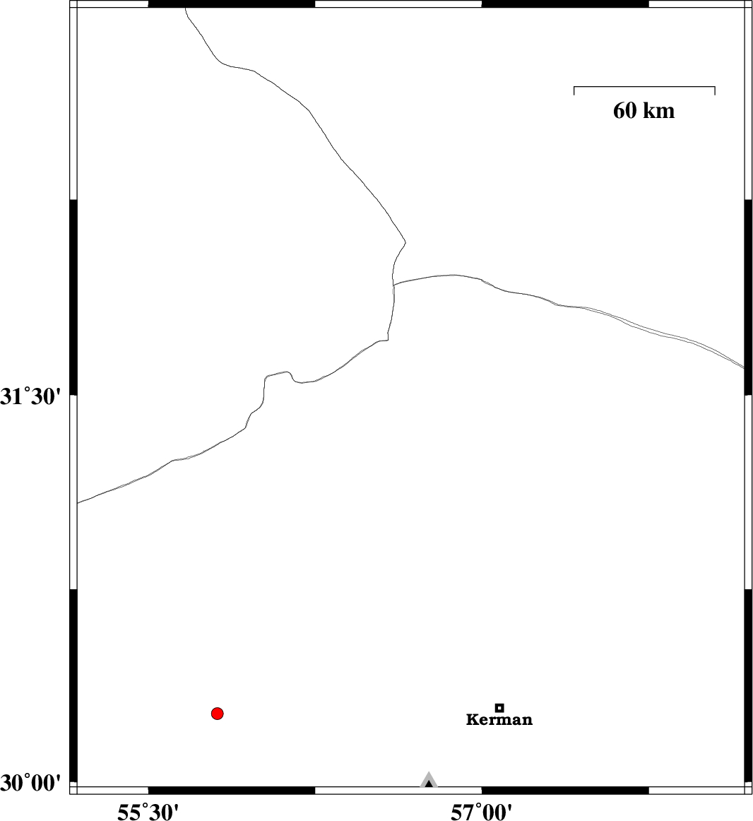 2013/02/18 | 00:56:09.4 | 04:26:09.4 | 31.48 | 56.68 | 35 | ML:2.6 | Kerman Province, 27 km North-West of Ravar | ||