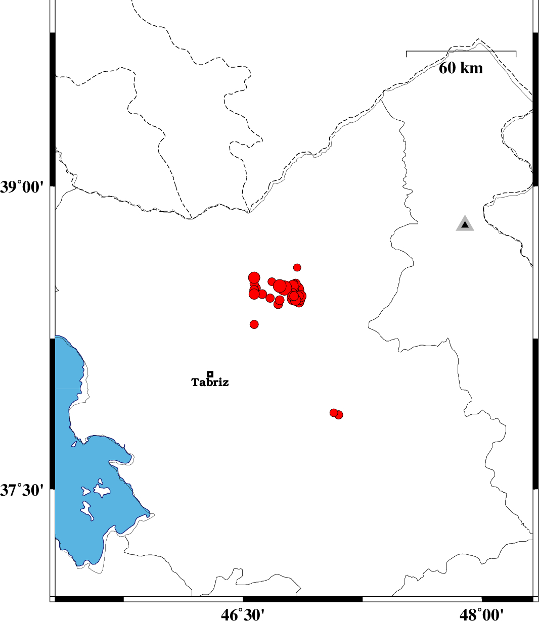 2013/01/22 | 02:37:10.3 | 06:07:10.3 | 38.5 | 46.58 | 18 | ML:2.5 | Azarbaijan Sharghi Province, 43 km West of Ahar |