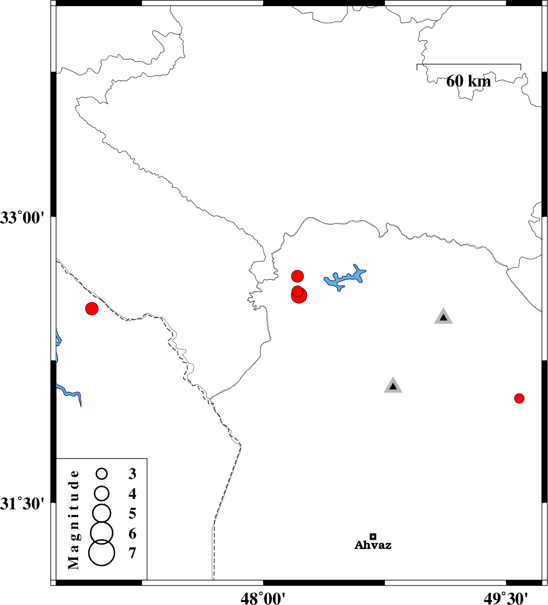 | 2013/02/14 | 05:23:24.5 | 08:53:24.5 | 32.52 | 46.94 | 14 | ML:3.5 | Iraq, 36 km South-West of Dehloran |