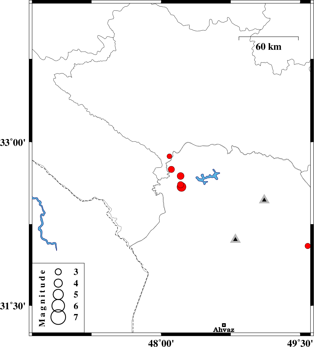 | 2013/02/19 | 06:06:08.3 | 09:36:08.3 | 32.61 | 48.21 | 14 | ML:3.1 | Khoozestan Province, 21 km North-West of Andimeshk | ||