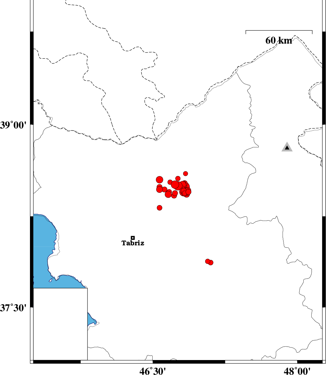 2013/02/15 | 06:02:06.3 | 09:32:06.3 | 38.47 | 46.62 | 44 | ML:2.5 | Azarbaijan Sharghi Province, 40 km West of Ahar | ||
