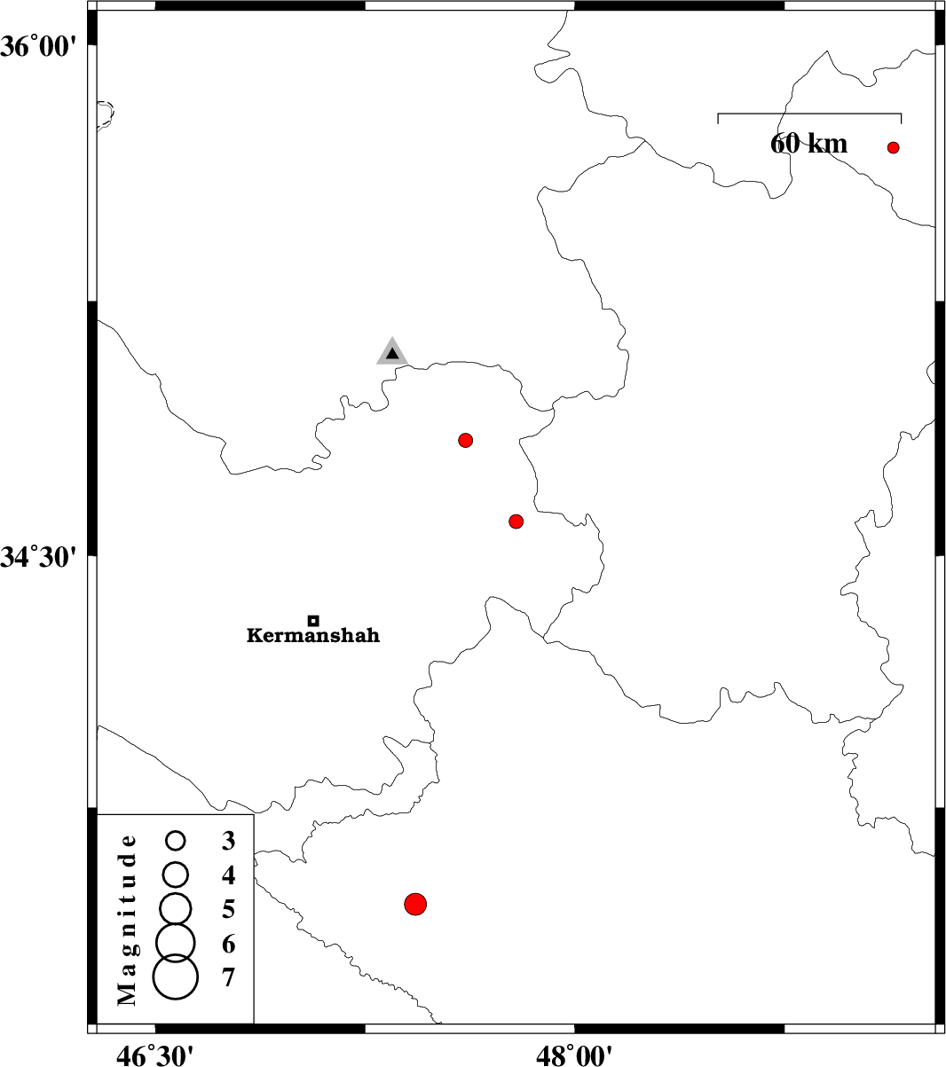 | 2013/02/23 | 19:27:23.6 | 22:57:23.6 | 34.84 | 47.61 | 14 | ML:2.3 | Kermanshah Province, 7 km Sonqor |