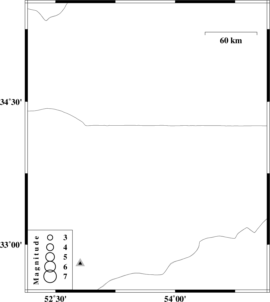 2013/02/28 | 02:15:50.8 | 05:45:50.8 | 34.02 | 53.65 | 14 | ML:2.8 | Esfahan Province, 138 km North-East of Nain |