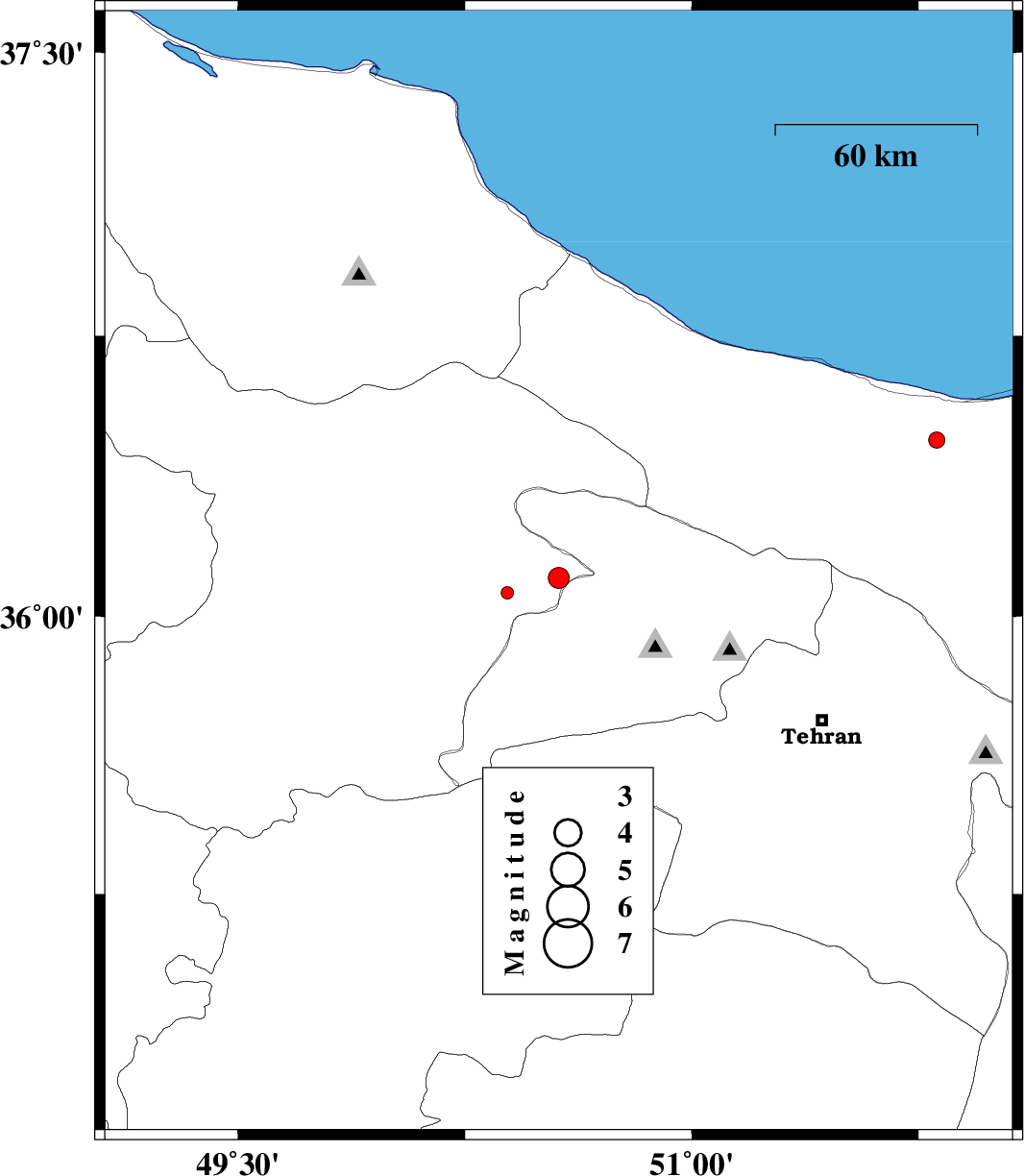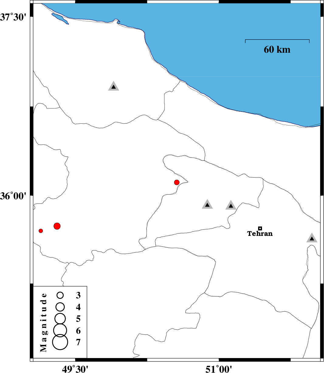 | 2013/02/22 | 07:38:19.7 | 11:08:19.7 | 35.74 | 49.31 | 15 | ML:3.1 | Ghazvin Province, 45 km South of Abhar |