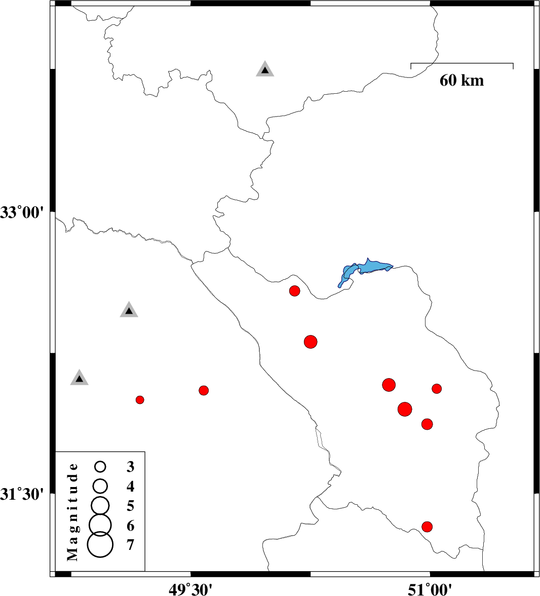 | 2013/02/13 | 14:50:56.5 | 18:20:56.5 | 31.32 | 50.98 | 18 | ML:2.9 | Chaharmahal Bakhtiari Province, 26 km South-East of Lordegan | ||
