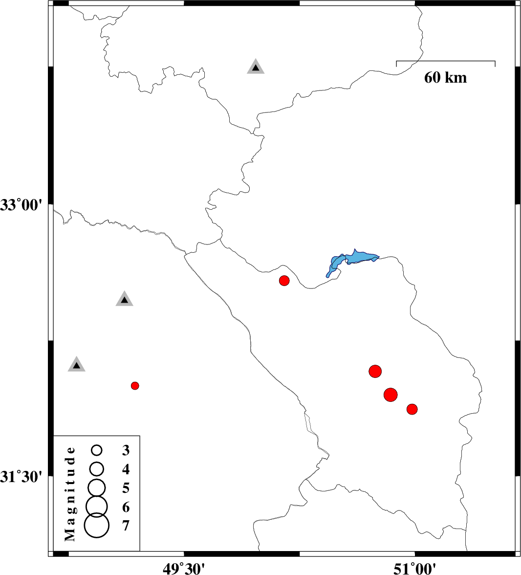 | 2013/03/02 | 19:24:30.1 | 22:54:30.1 | 31.95 | 50.84 | 14 | ML:3.9 | Chaharmahal Bakhtiari Province, 18 km East of Ardel | ||