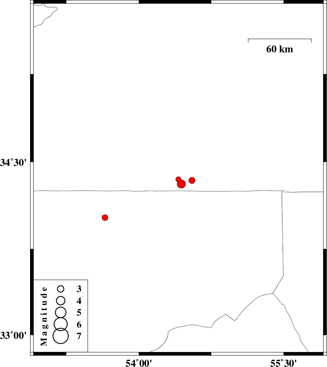 | 2013/03/05 | 12:29:51.2 | 15:59:51.2 | 34.34 | 54.55 | 15 | ML:2.9 | Semnan Province, 204 km South-East of Damghan | ||
