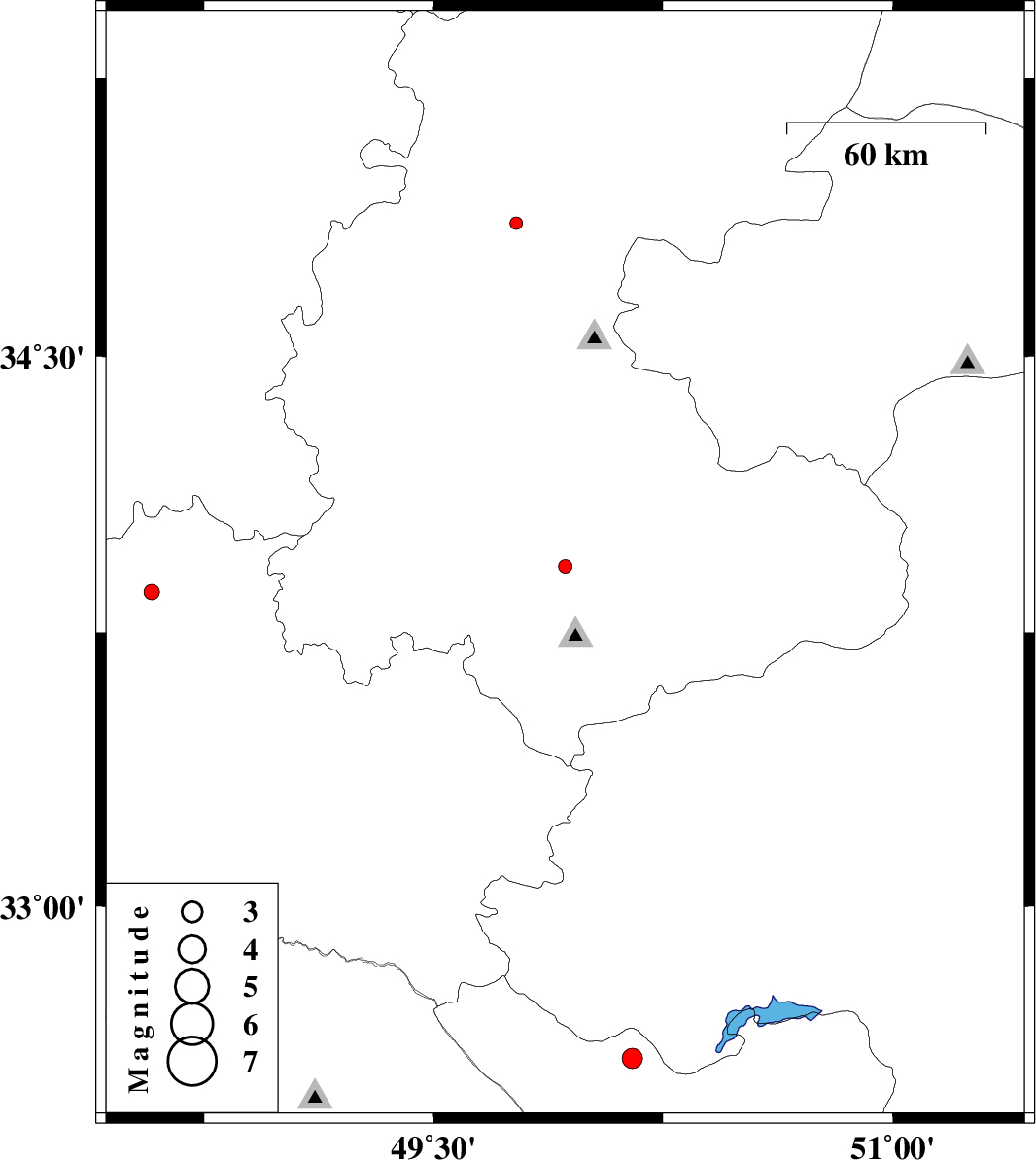 | 2013/03/06 | 10:30:23.3 | 14:00:23.3 | 33.93 | 49.93 | 18 | ML:2 | Markazi Province, 29 km South-East of Arak | ||