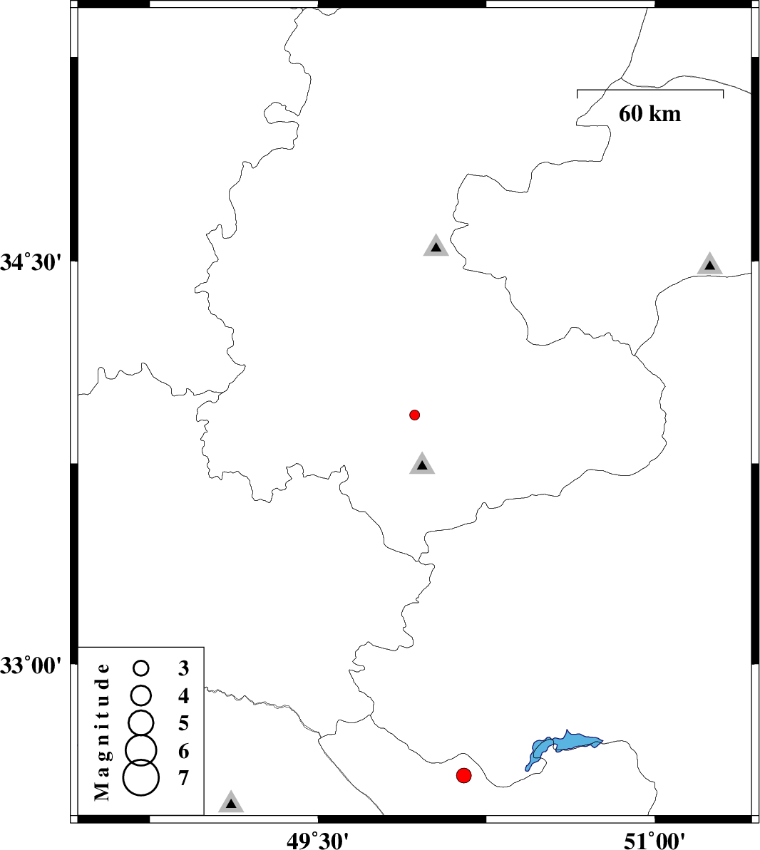 2013/03/06 | 10:30:23.3 | 14:00:23.3 | 33.93 | 49.93 | 18 | ML:2 | Markazi Province, 29 km South-East of Arak | ||
