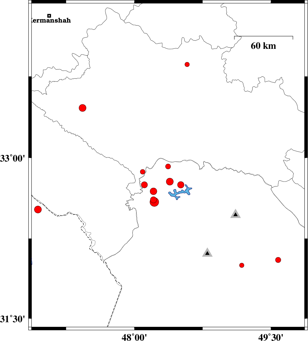 2013/02/07 | 16:26:30.0 | 19:56:30.0 | 33.86 | 48.58 | 29 | ML:2.3 | Lorestan Province, 17 km West of Borujerd |