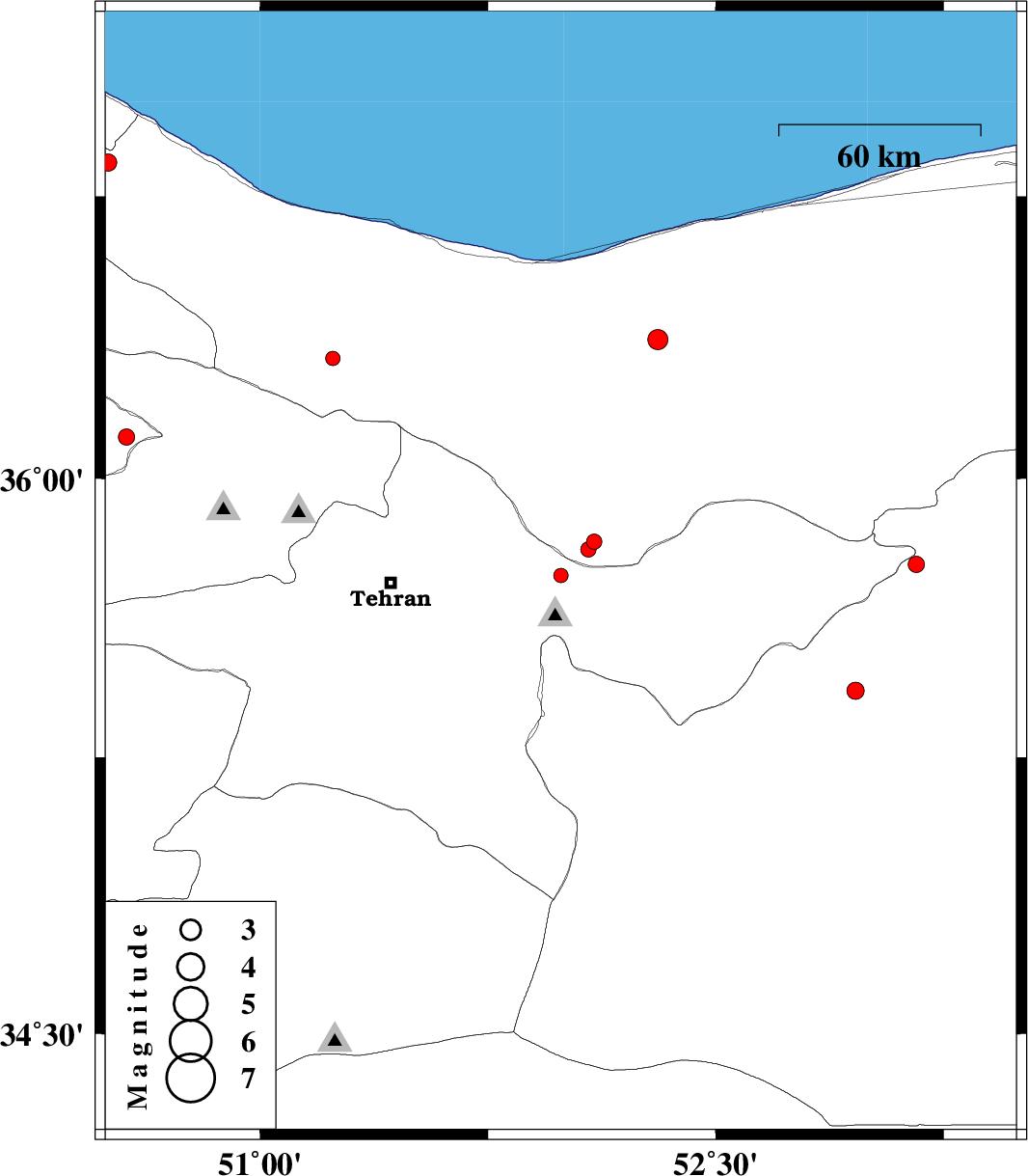 | 2013/03/08 | 16:09:30.6 | 19:39:30.6 | 35.43 | 52.96 | 40 | ML:2.6 | Semnan Province, 40 km South-East of Firuzkuh | ||