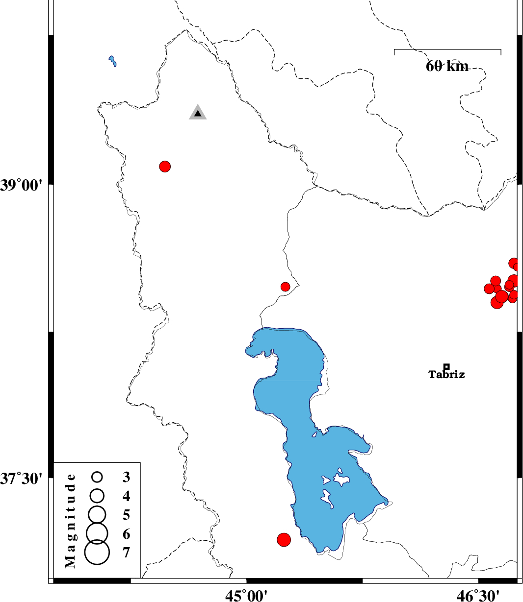 2013/02/15 | 06:02:06.3 | 09:32:06.3 | 38.47 | 46.62 | 44 | ML:2.5 | Azarbaijan Sharghi Province, 40 km West of Ahar | ||