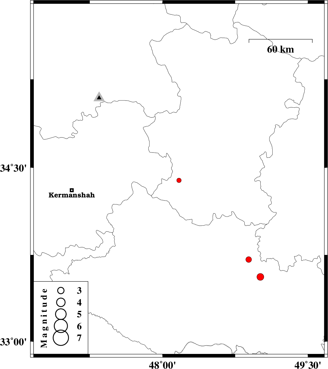 | 2013/03/15 | 08:34:40.1 | 12:04:40.1 | 33.71 | 48.89 | 15 | ML:2.7 | Lorestan Province, 24 km South-East of Borujerd |
