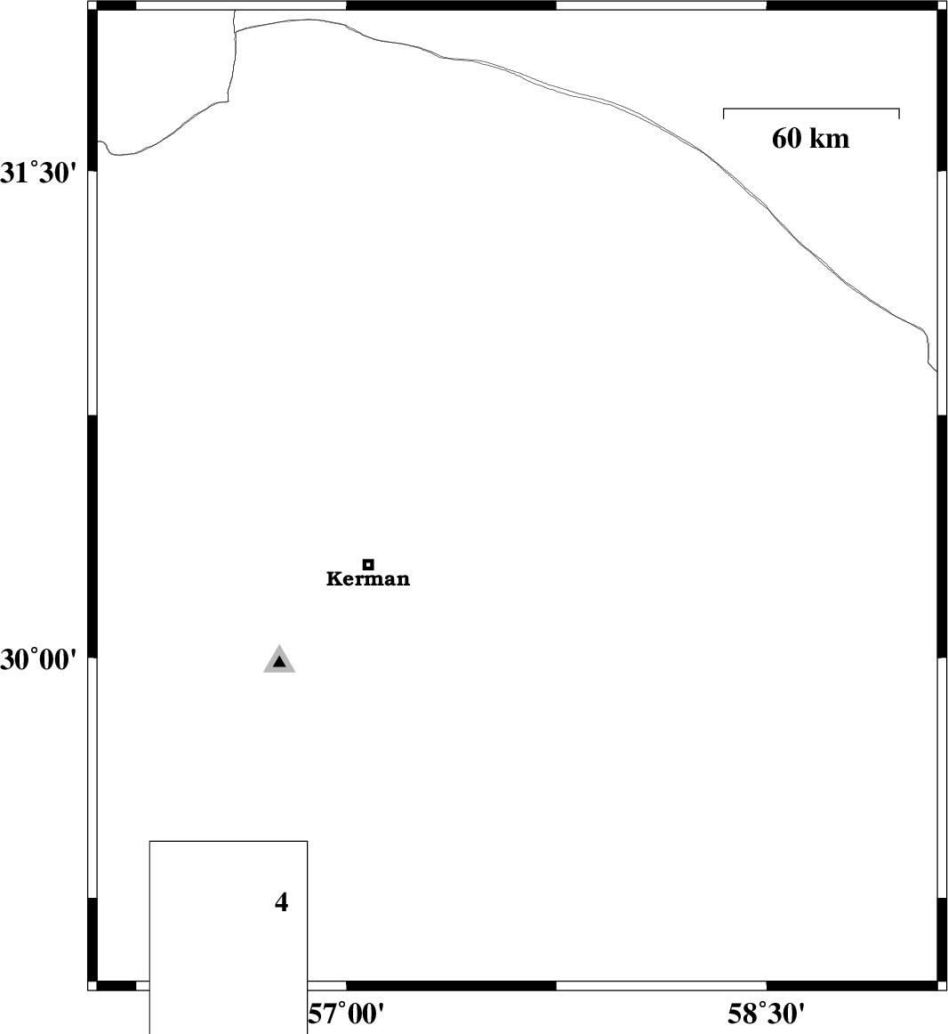 2013/03/23 | 14:09:40.5 | 18:39:40.5 | 30.57 | 57.28 | 16 | ML:2.8 | Kerman Province, 37 km North-East of Kerman |