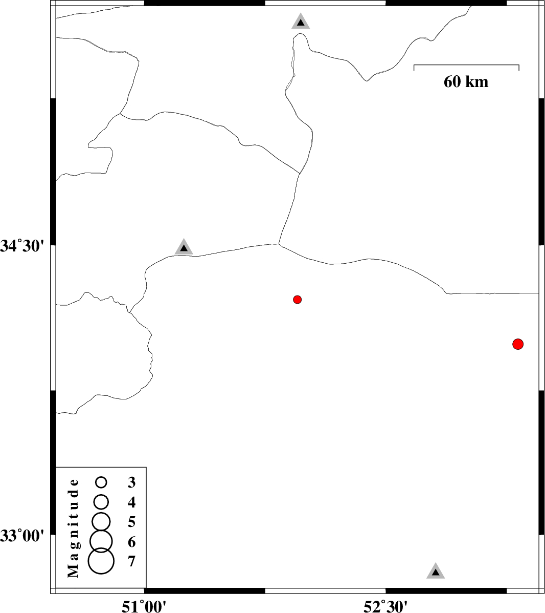 | 2013/03/24 | 14:52:02.5 | 19:22:02.5 | 33.99 | 53.32 | 14 | ML:3 | Esfahan Province, 126 km North-East of Nain |
