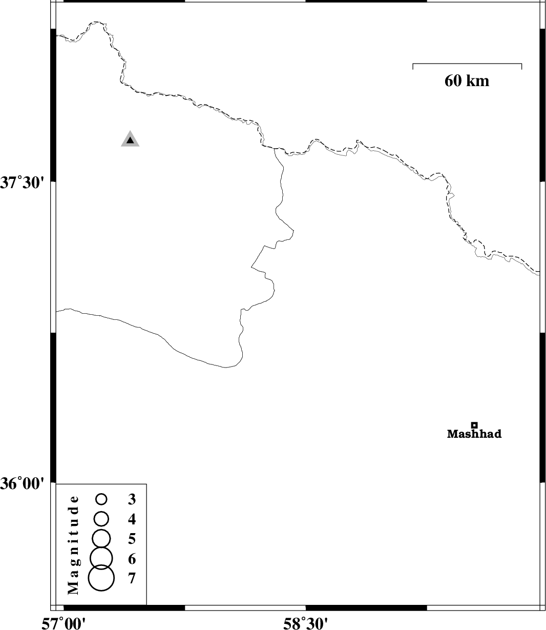 | 2013/03/30 | 23:18:17.6 | 03:48:17.6 | 36.88 | 58.45 | 18 | ML:2.5 | Khorasan(center) Province, 26 km South of Quchan |