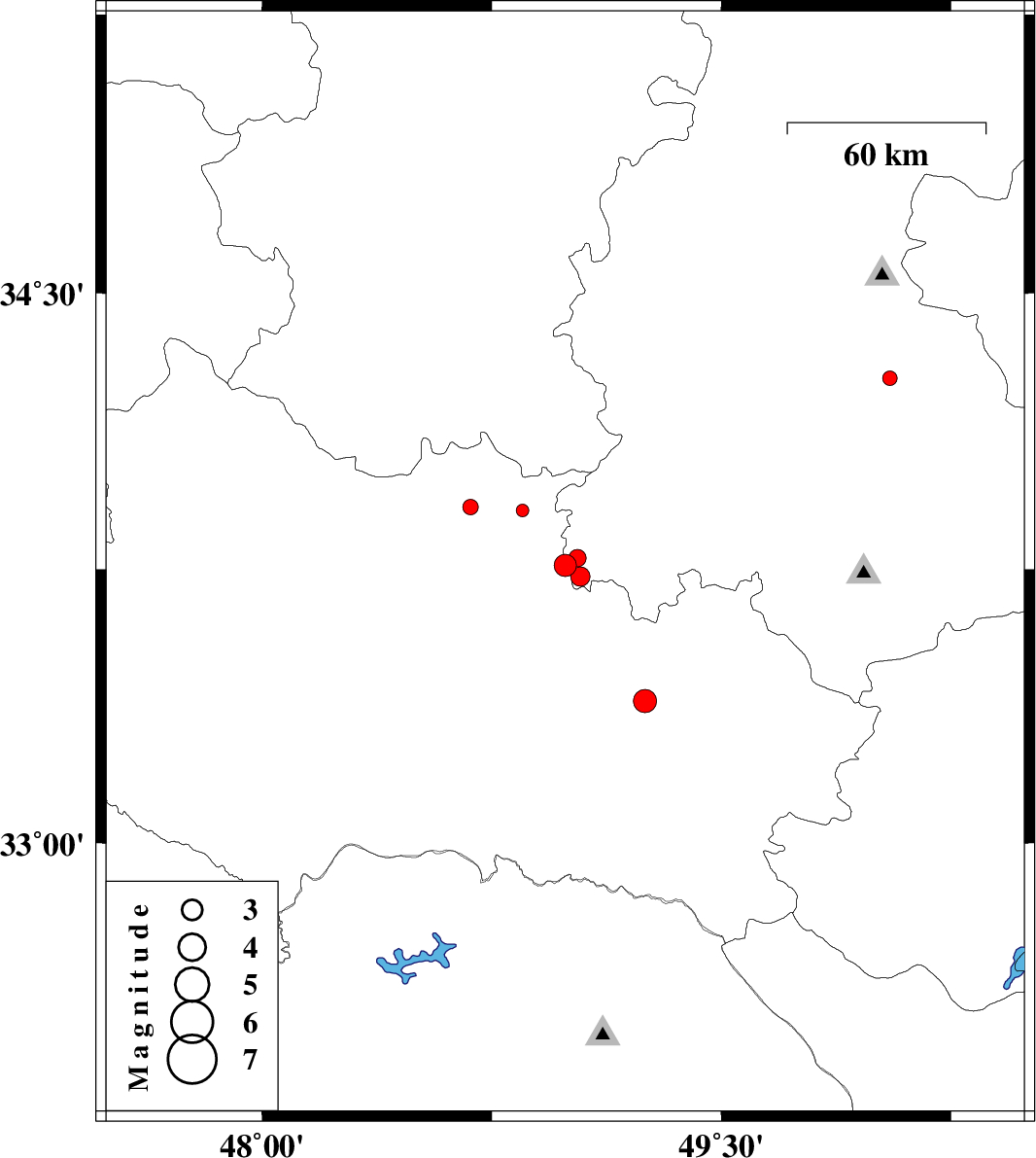 | 2013/03/31 | 06:52:30.0 | 11:22:30.0 | 33.91 | 48.85 | 14 | ML:1.9 | Lorestan Province, 8 km Borujerd |