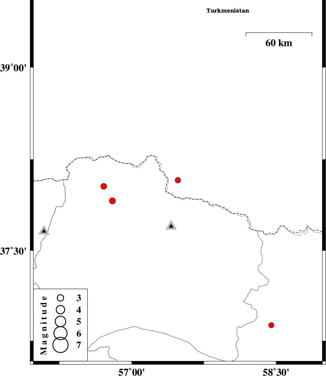| 2013/04/03 | 01:49:02.3 | 06:19:02.3 | 37.91 | 56.8 | 14 | ML:2.9 | Khorasan(north) Province, 42 km North-West of Ashkhaneh | ||