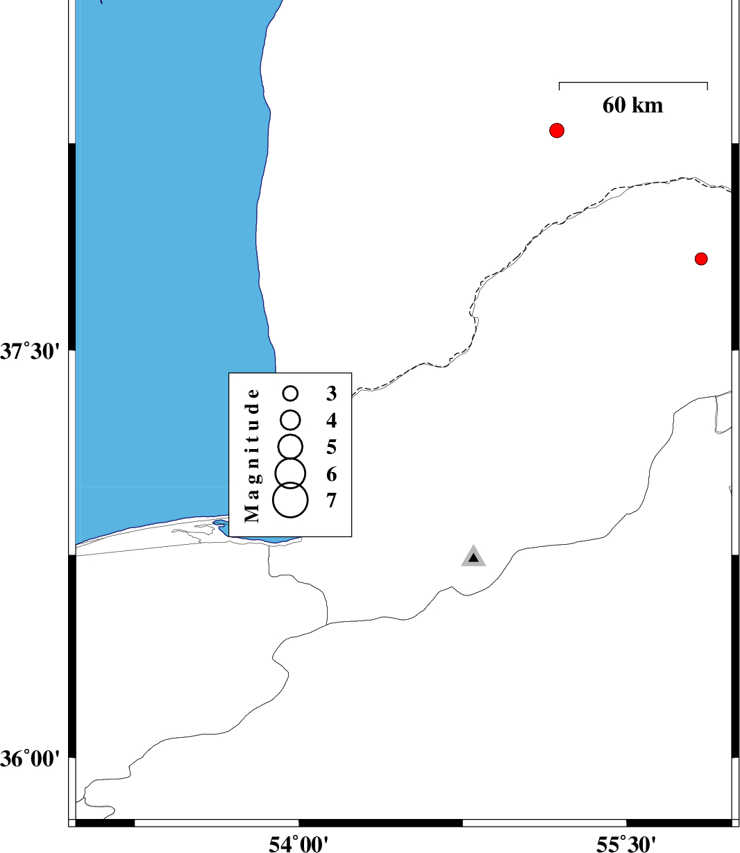 | 2013/04/05 | 06:35:07.4 | 11:05:07.4 | 36.8 | 55.14 | 46 | ML:2.6 | Golestan Province, 23 km South of Ramian |