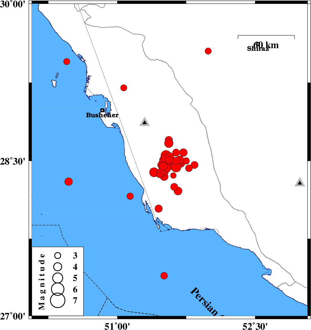 2013/04/09 15:26:10.8 19:56:10.8 28.4651.8436 ML:3.5 Bushehr Province, 50 km South-East of Khormog