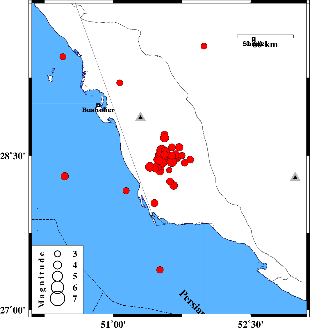 2013/04/09 15:26:10.8 19:56:10.8 28.4651.8436 ML:3.5 Bushehr Province, 50 km South-East of Khormog