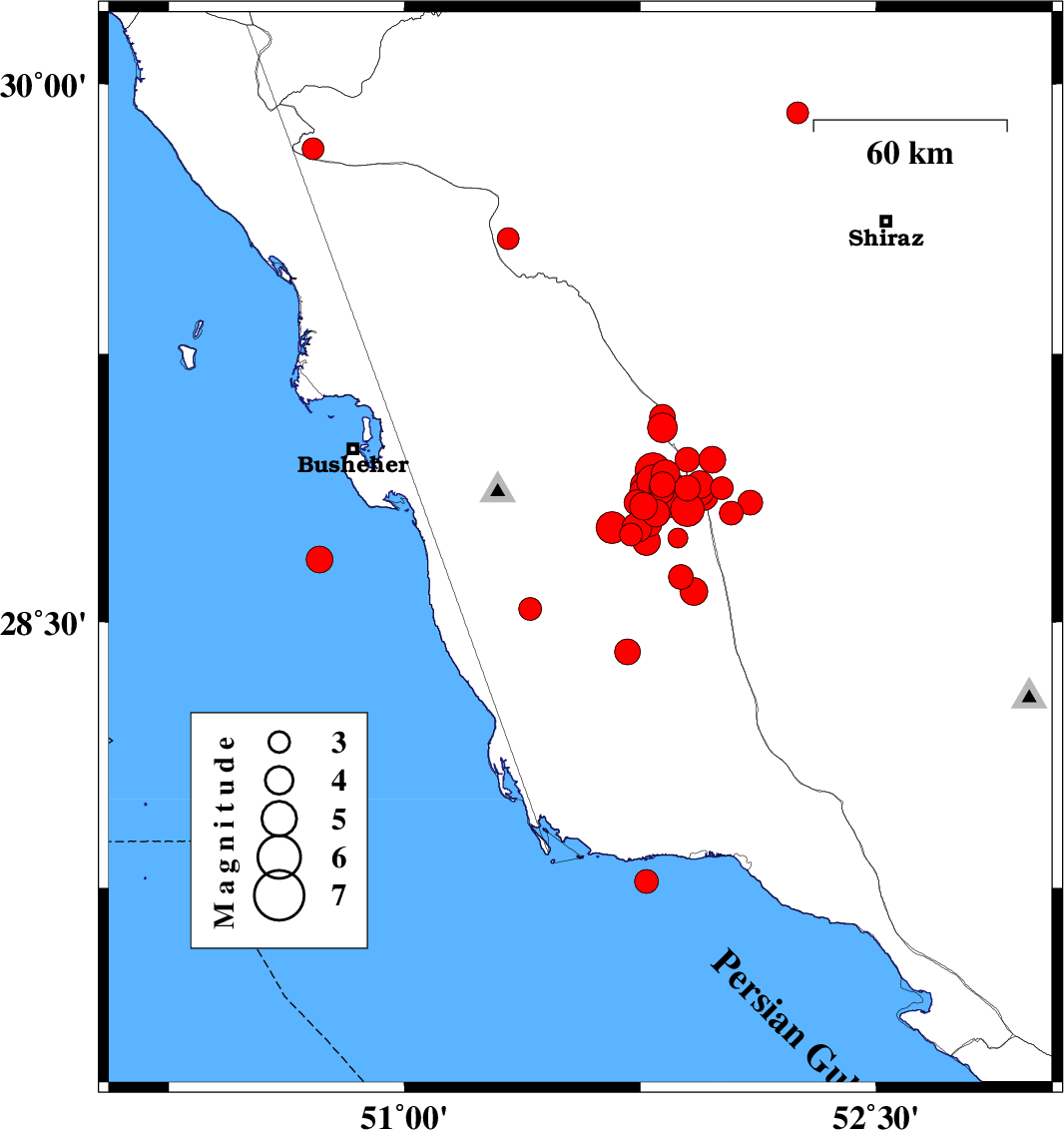 2013/04/09 23:32:54.0 04:02:54.0 28.350.4715 ML:3.8 Persian Gulf, 84 km South-West of Busheher