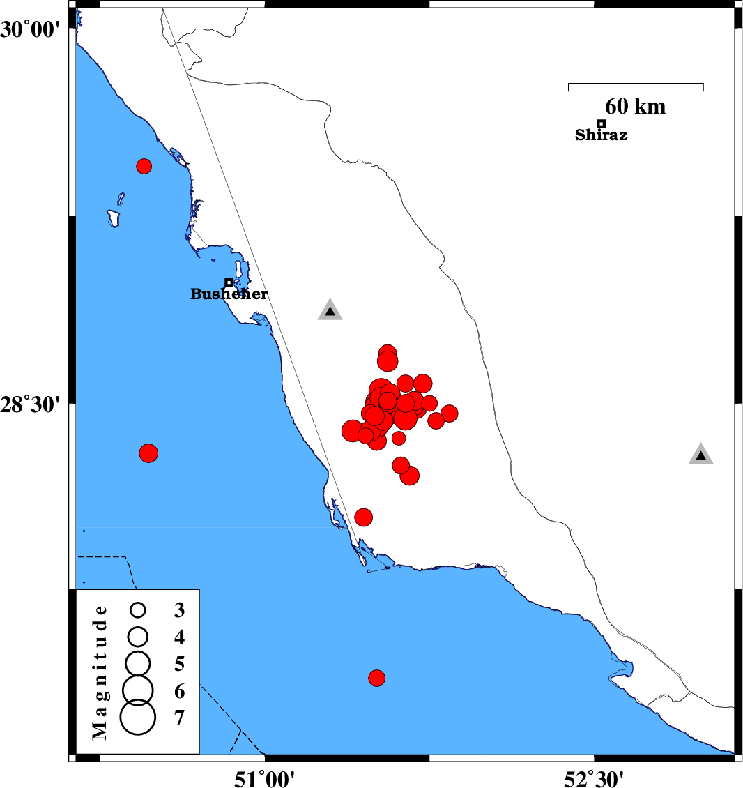 2013/04/09 11:52:50.4 16:22:50.4 28.4851.5920 ML:6.2 Bushehr Province, 29 km South-East of Khormog