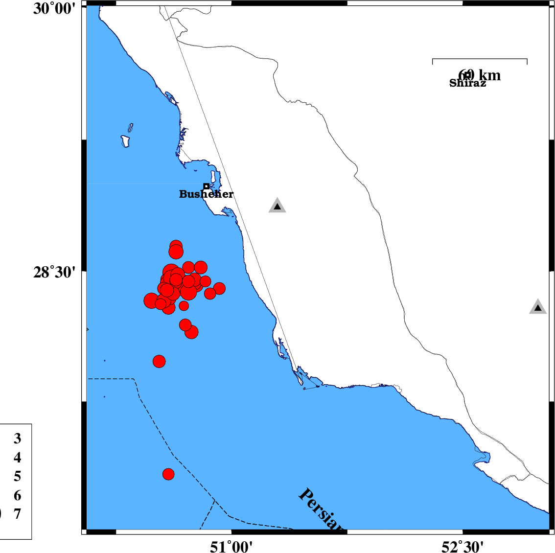 2013/04/03 15:35:12.6 20:05:12.6 29.4550.4518 ML:3.1 Persian Gulf, 15 km South of Bandar-e genaveh