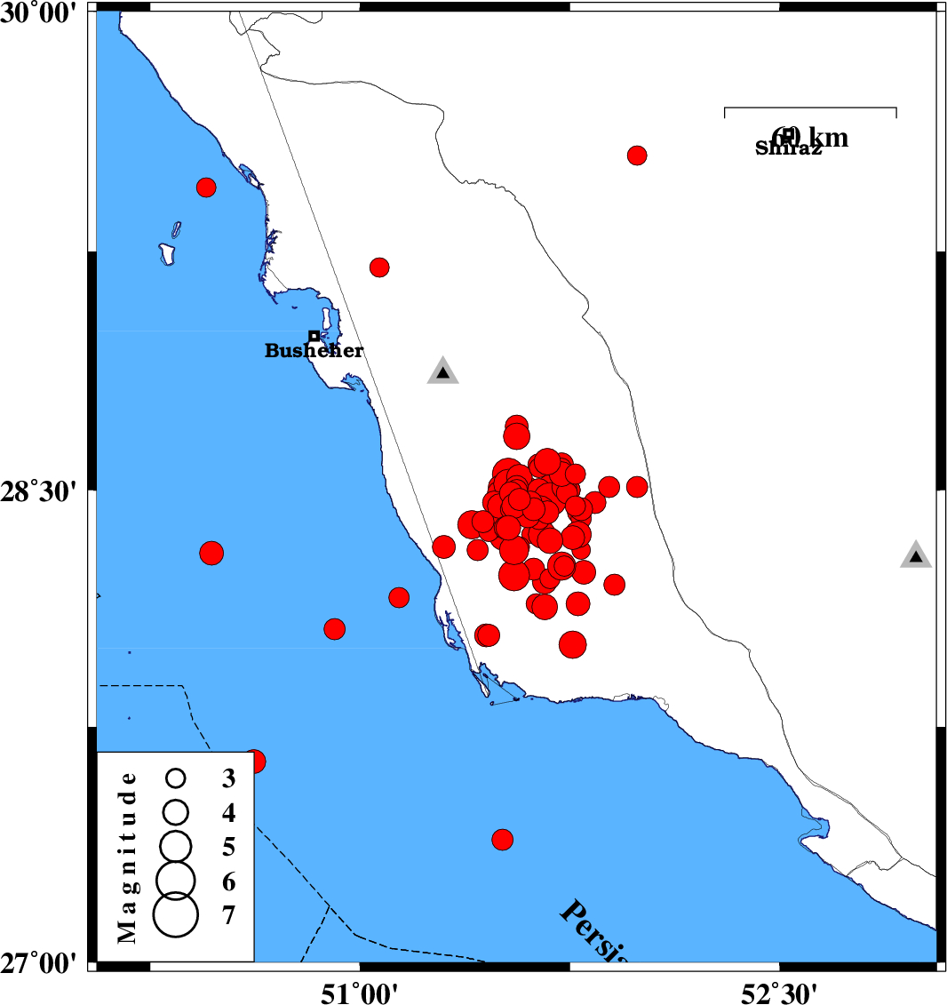 2013/04/10 19:41:57.5 00:11:57.5 28.4551.5530 ML:3.9 Bushehr Province, 28 km South-East of Khormog