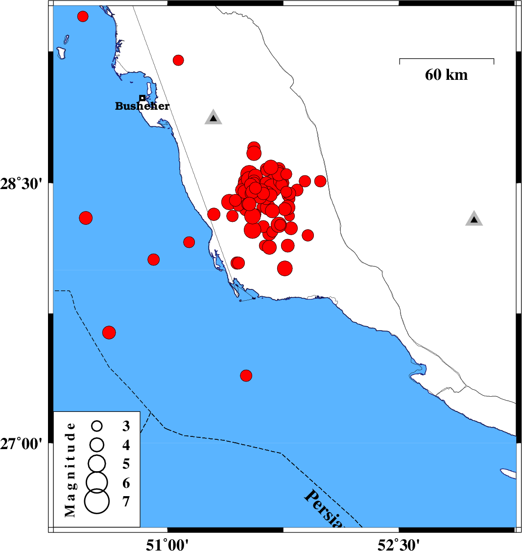 Bushehr Province, 44 km North-West of Bandar-e kangan | |