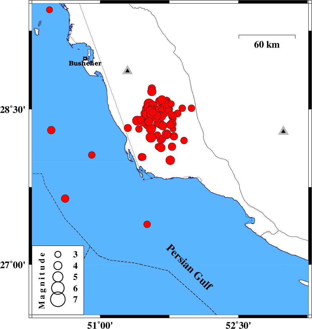 2013/04/10 19:41:57.5 00:11:57.5 28.4551.5530 ML:3.9 Bushehr Province, 28 km South-East of Khormog