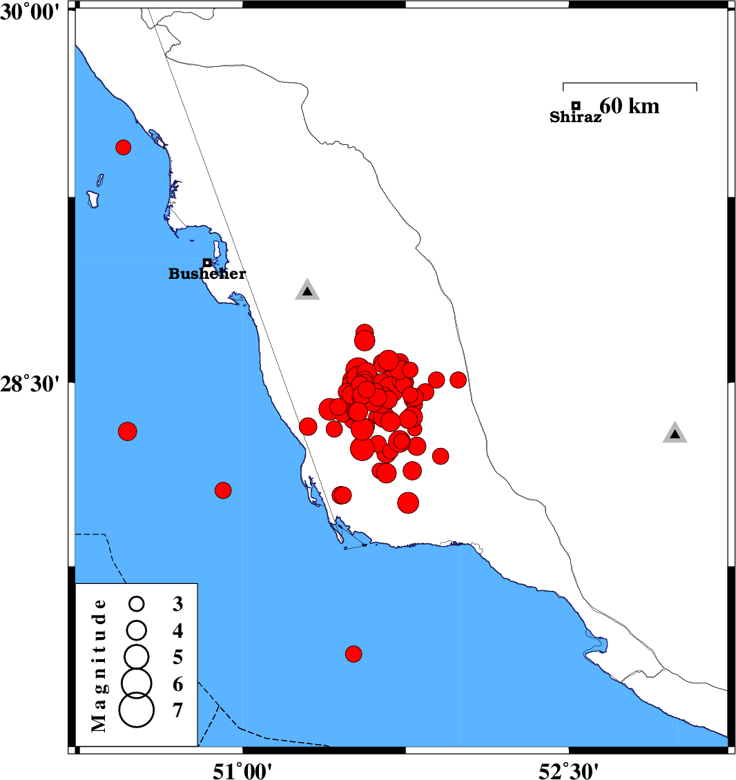2013/04/10 19:41:57.5 00:11:57.5 28.4551.5530 ML:3.9 Bushehr Province, 28 km South-East of Khormog