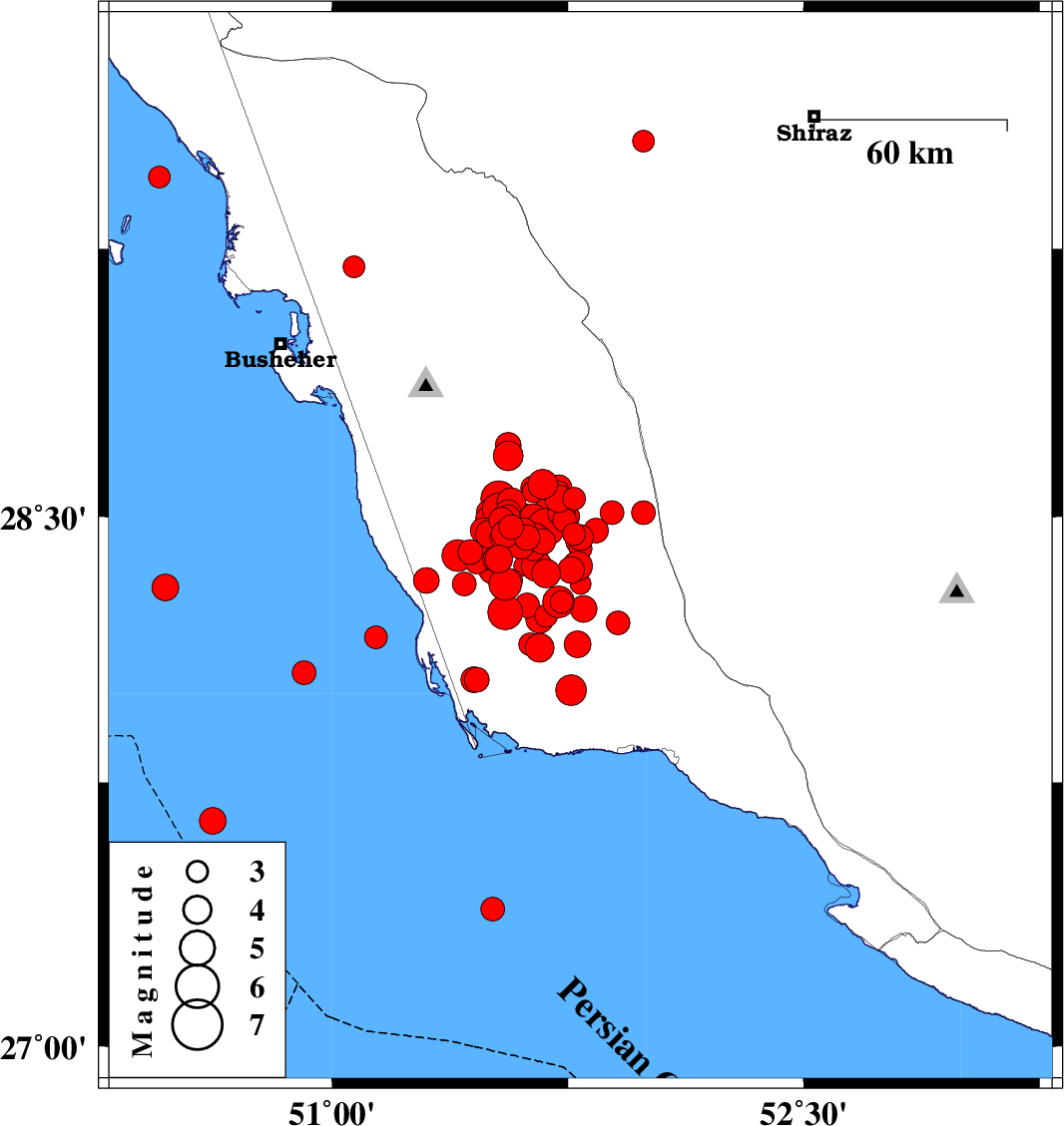 2013/04/10 19:41:57.5 00:11:57.5 28.4551.5530 ML:3.9 Bushehr Province, 28 km South-East of Khormog