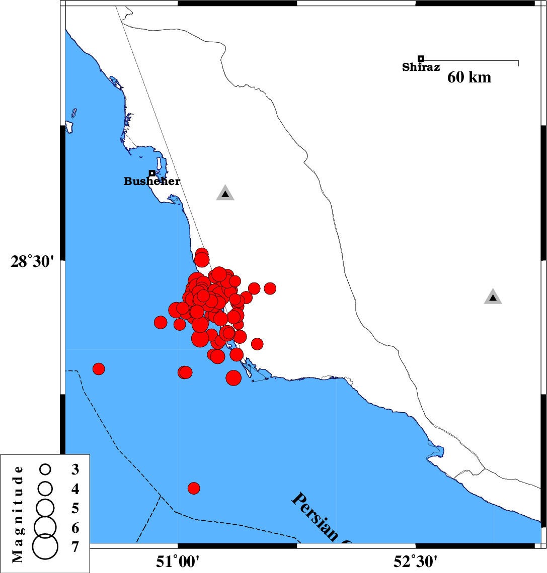 2013/04/09 12:31:37.6 17:01:37.6 28.5151.514 ML:3.7 Bushehr Province, 20 km South-East of Khormog