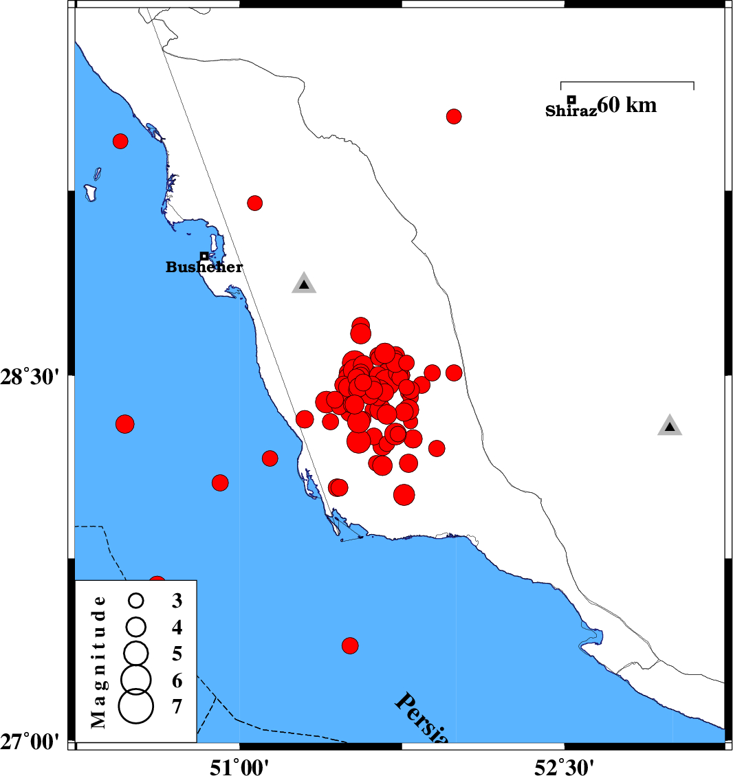 2013/04/09 12:31:37.6 17:01:37.6 28.5151.514 ML:3.7 Bushehr Province, 20 km South-East of Khormog