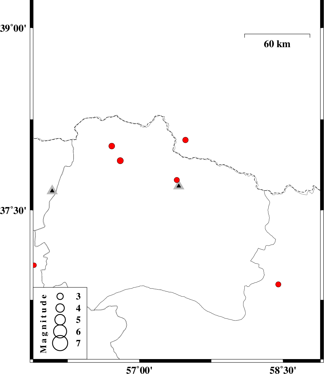 | 2013/04/03 | 01:49:02.3 | 06:19:02.3 | 37.91 | 56.8 | 14 | ML:2.9 | Khorasan(north) Province, 42 km North-West of Ashkhaneh | ||