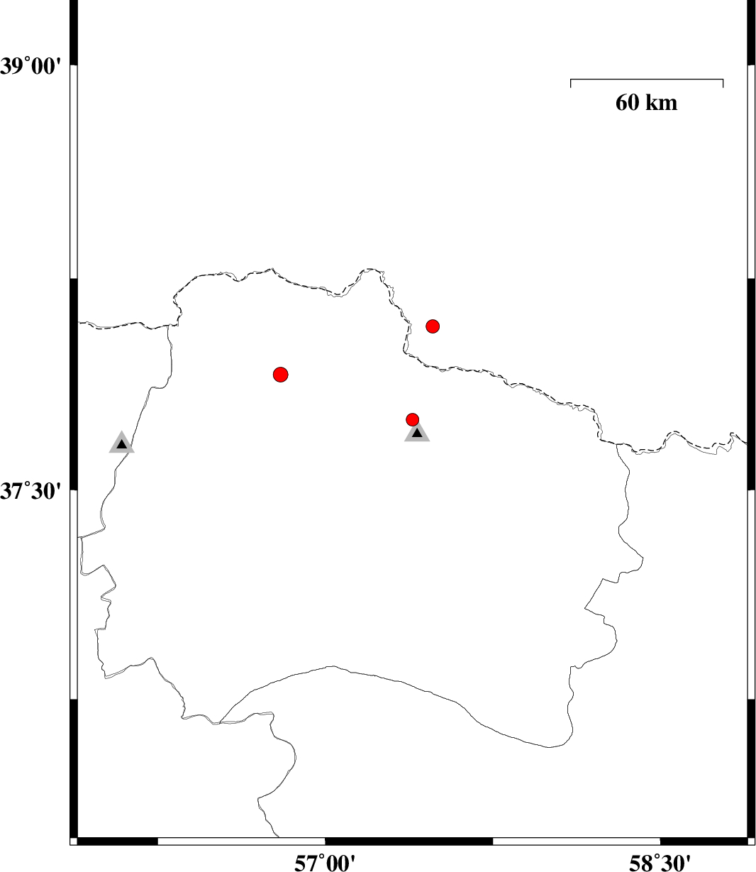 2013/04/10 | 05:53:59.6 | 10:23:59.6 | 37.75 | 57.39 | 15 | ML:2.6 | Khorasan(north) Province, 32 km North of Bojnurd | ||